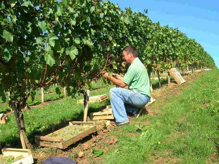 D'abord, la récolte des meilleures grappes se fait à la main. Elles sont délicatement déposées sur des claies avant d'être mises à sécher dans un local aéré pendant au moins six semaines. Lors du passerillage, le raisin perd les deux tiers de son volume d'eau et se concentre en sucre et en arômes. En définitive, il ne faut pas moins de 7 à 8 Kg de raisins pour produire 1 litre de Vin de Paille ! A l'approche de Noêl, les raisins sont pressés. Le Vin de Paille est ensuite élevé sous le contrôle de l'oenologue pendant plus de 3 ans dont 18 mois minimum en fût avant d'être mis en bouteille. ![]() |